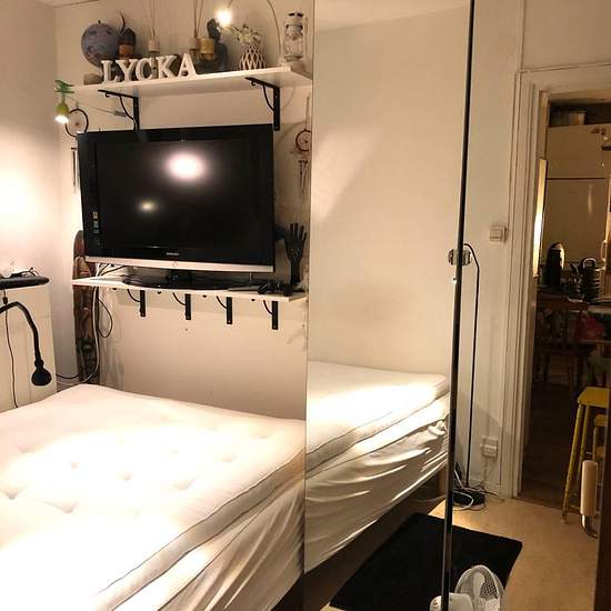 We have two terrariums in our son's room with a bearded dragon and a corn snake. We also have a Bengal cat. The place is located in Farsta centrum, 2 minutes from the subway. The room has a 140 cm wide bed with a new mattress. There is a laundry room in the building. Spacious wardrobe measuring 2.40 x 1.0 x 0.60. Electricity and Wi-Fi are included in the rent. Playstation 3 + 40-inch TV. Bed linens and towels are included.