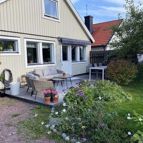 Large and spacious townhouse centrally located on Ekerö. Situated on a quiet cul-de-sac in the popular, child-friendly Närlunda neighborhood. The house offers three generous living rooms and five excellent bedrooms. It is 200 m from a direct bus to Brommaplan, a grocery store, a sports field and a swimming pool. Rented furnished; water and waste collection are included in the rent. South-facing garden with apple trees, berry bushes and a sunny terrace. High level of coziness with a tiled stove in the living room. Fiber optic internet is inst...