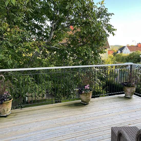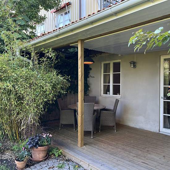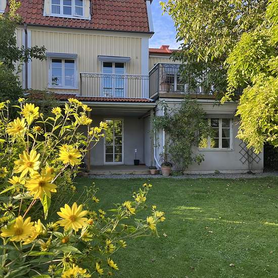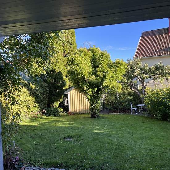 Pittoreskt gavelradhus från 1922 i lugnt område, med insynskyddad trädgård, uteplats och terass samt parkeringsplats med laddbox invid huset. Huset har en boyta om 175 kvm fördelat på tre våningar med bl.a. tre sovrum och två badrum. I huset finns bastu, två fungerande eldstäder och hemmagym. Huset uthyres fullt möblerat inklusive husgeråd m.m.. Spårvagns/busshållplats inom två minuters gångväg och ca 5 min gångväg till närliggande butiker. Bostaden hyrs ut under ett år (med eventuell möjlighet till förlängning) då ägarna prövar annat boende...
