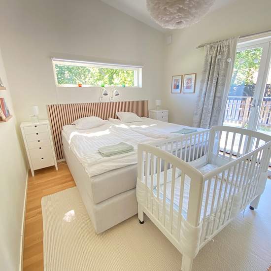 Välkommen till ett lugnt, grönt och tryggt boende nära både natur och city! Huset ligger endast ca 20 minuter från Stockholm city med buss och ändå nära både skärgården, naturreservatet Velamsund, en lugn och ren sandstrand några minuter från huset samt en badvänlig sjö en minut från huset. Huset är perfekt för familjer med barn eller stora sällskap. Det finns gott om leksaker, en spjälsäng, barnstolar och en lekplats med gungor, lekstuga, rutschkana och studsmatta i trädgården. På bottenvåningen finns ett stort vardagsrum, ett tv-rum me...