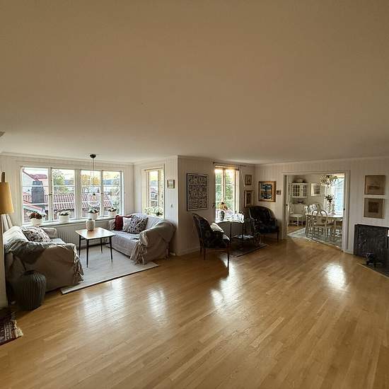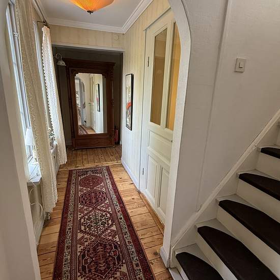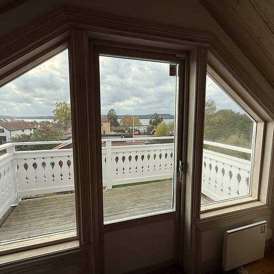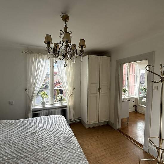 1. Unique and fully furnished turn-of-the-century apartment on two levels – with lake view in the heart of central Sigtuna Welcome to a unique and fully furnished turn-of-the-century apartment on the charming Stora gatan in Sigtuna, with views over the water and a location that could not be more central. Here you live within walking distance of schools (SSHL), bus services, the Lake Mälaren waterfront promenade, cafés, restaurants and all conveniences – right in Sigtuna’s historic heart. The apartment is arranged over two floors (ground flo...