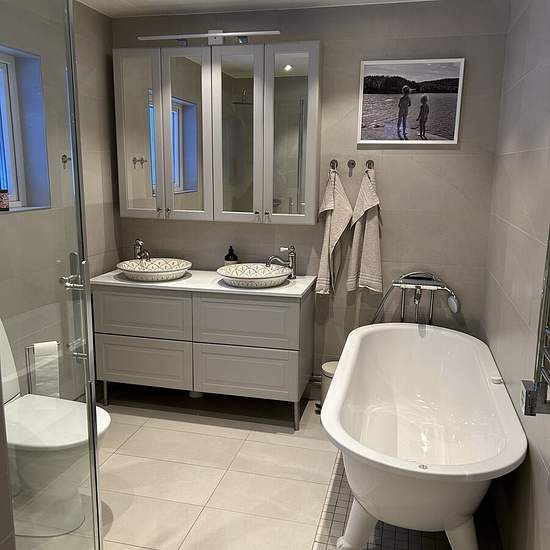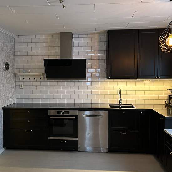 Spacious and modern villa in a quiet and family-friendly area. The house is in very good condition • 4–5 bedrooms • Modern kitchen and large living room • Fully tiled bathroom • Basement with sauna, shower and gym • Newer facade and partly new triple-glazed windows • Ground-source heating and solar panels (energy-efficient) • Private, sheltered plot with good sun exposure • Garage beneath the house Service fee for tenant: 643