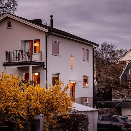 Renting out our beautiful home due to relocation outside of Sweden. This villa is in very good condition throughout and has undergone extensive renovations. The facade, foundation and roof have been upgraded to the highest standard, as have all technical installations including electricity, logs and windows. The luxurious bathrooms have been renovated with exclusive materials from Brickmates Norrvange and the stylish interior design comes from Haven, which gives the home a harmonious and sophisticated feel. The large kitchen is site-built f...