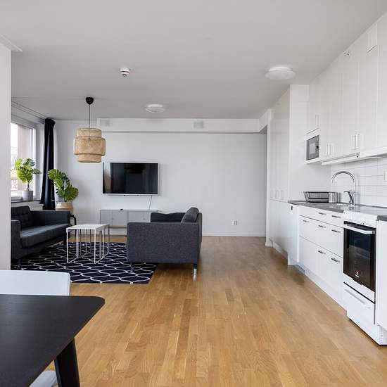 Bostaden Vill du bo tillsammans med andra i en stor lägenhet med generösa gemensamhetsytor, men ändå ha tillgång till ett privat rum? Här delar fyra personer en lägenhet på ca 120 kvm med kök och vardagsrum i öppen planlösning, balkong, och badrum. Lägenheten är utrustad med diskmaskin, tvättmaskin och torktumlare. Det är golv av ekparkett i lägenheten och i rummen, samt klinkers i delar av hallen. Fönsterbrädorna är i granit. Är du sugen på att flytta ihop med dina kompisar? Eller vill du lära känna nya människor? Då är co-living för dig K...