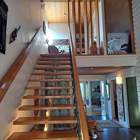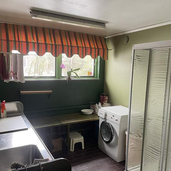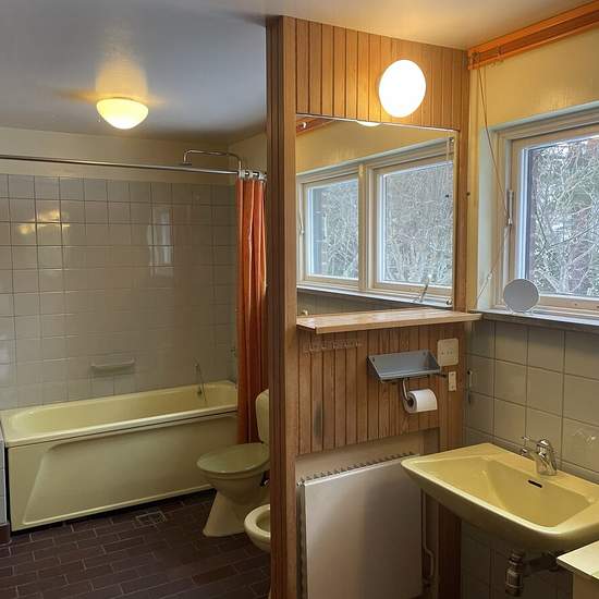 The house is located in Kobbehall, one of Gothenburg's most popular areas, approximately 10 km south of the city centre. It is close to lakes, wilderness and the sea. The houses in Kobbehall were all built in the late 1960s and 1970s in the same characteristic style. All houses have spacious gardens. The area has a communal tennis court, football pitch and a playground. This house has an excellent location in Kobbehall. 4-5 bedrooms, 4 toilets, generous living areas both inside and out. Sea view. Service fee for tenant: 1237