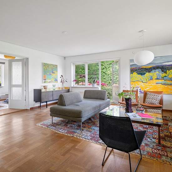 PRIME LOCATION ON BELLEVUE SJÖSIDA On a popular street is a truly well-planned family villa of 220 sqm plus 116 sqm secondary area. A home for the large family who wants lovely social spaces and plenty of bedrooms. The house has also been updated over the years with, among other things, a new kitchen, new electrical system, a guest wing, a newly installed air-to-air heat pump, etc. For those who need an office or guest quarters, a secluded section with its own entrance is offered, with a bedroom, a fresh laundry room with washer/dryer and a ...