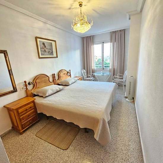 Rental license available. For rent: a spacious apartment of 110 sqm with three bedrooms, including a larger one with a view over a park with exotic birds such as green parrots. The bed in the large bedroom measures 200 cm x 200 cm (two separate beds with a shared mattress topper). The two beds in the second bedroom measure 90 cm x 200 cm. In the third bedroom there is a bed measuring 145 cm x 200 cm. Air-conditioned living room with seating area and dining table, a large terrace with new, fresh furniture, two bathrooms (one with shower and o...