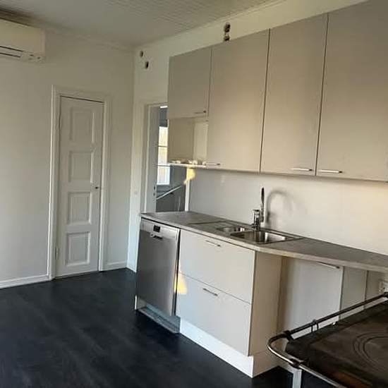 For rent in Harparskog, Mannerheim Road. Semi-detached half in an idyllic setting. 3 rooms + kitchen, generous spaces, approx. 100 m². Wood-burning stove in the kitchen and a metal oven on the upper floor. Charming and newly renovated! Yard sauna. We are looking for quiet tenants without credit defaults. Minimum 1-year contract. Rental deposit €1,500. Rent €950/month + water fee €25/person/month. Heating is included in the rent; the tenant arranges their own home insurance and electricity contract. Well-behaved, friendly and house-trained...