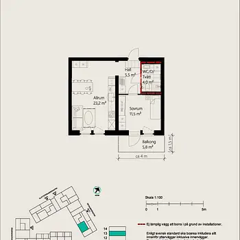 1 Room - Apartment - 41 m²61130, Nyköping