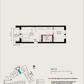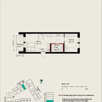 1 Room - Apartment - 39 m²61135, Nyköping
