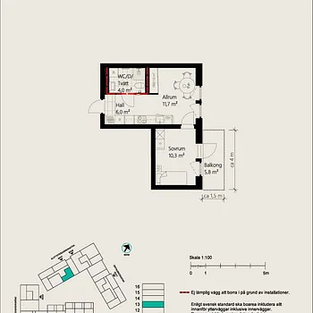 1 Room - Apartment - 10 m²61132, Nyköping