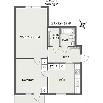 2 Rooms - Apartment - 58 m²91731, Dorotea