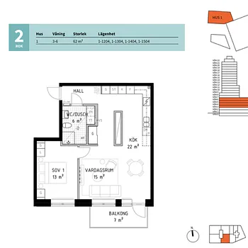 2 Rooms - Apartment - 62 m²41762, Gothenburg