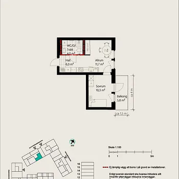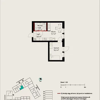 2 Rooms - Apartment - 33 m²61135, Nyköping