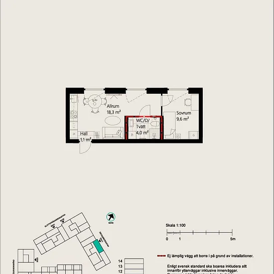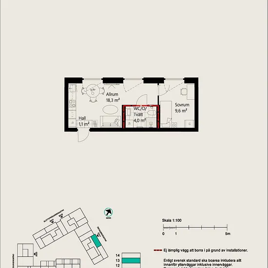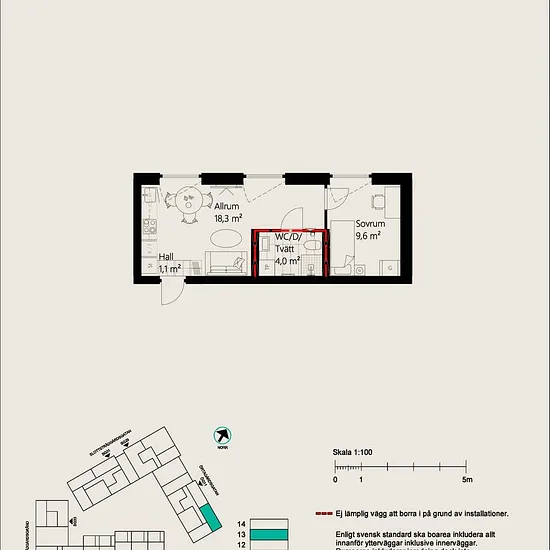 1 Room - Apartment - 28 m²61133, Nyköping
