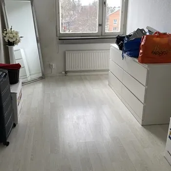 Mycket natur runt omkring även om läget nära vägen kan upplevas som störande beroende på var du bor. Nära till Hökarängsbadet ungefär 5 min promenad