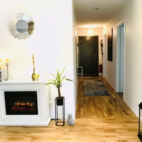 Mycket natur runt omkring även om läget nära vägen kan upplevas som störande beroende på var du bor. Nära till Hökarängsbadet ungefär 5 min promenad