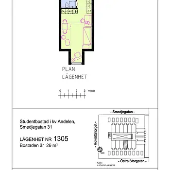1 room rental homes in Jönköping cost on average kr6,451 and are on average 27 m²