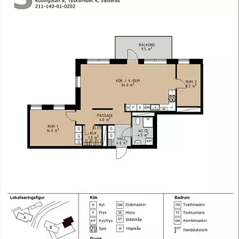 3 Rooms - Apartment - 74 m²72473, Västerås