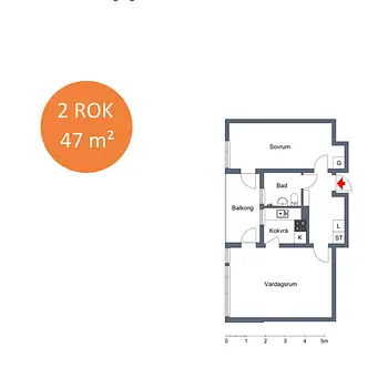 2 Rooms - Apartment - 47 m²72473, Västerås