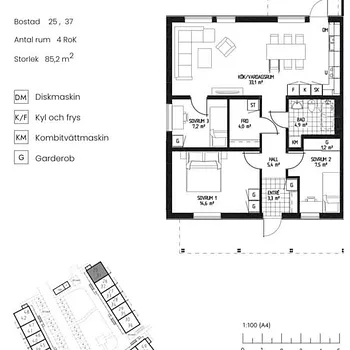 3 room rental homes in Mjölby cost on average kr10,029 and are on average 82 m²