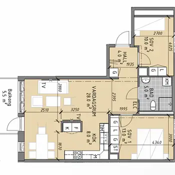 2 Rooms - Apartment - 58 m²58254, Linköping