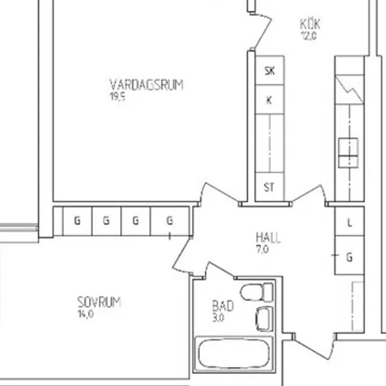 2 room apartment in Tumba