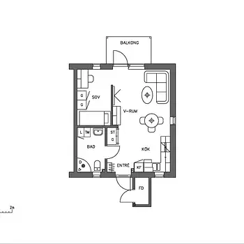 2 Rooms - Apartment - 42 m²37470, Trensum