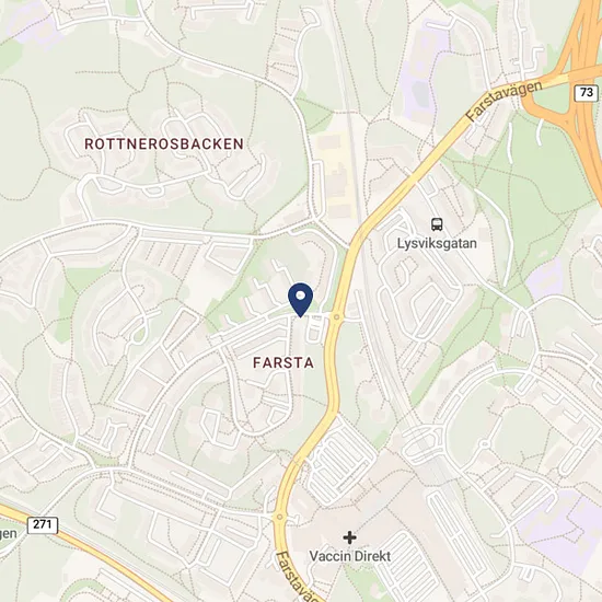 Mycket natur runt omkring även om läget nära vägen kan upplevas som störande beroende på var du bor. Nära till Hökarängsbadet ungefär 5 min promenad