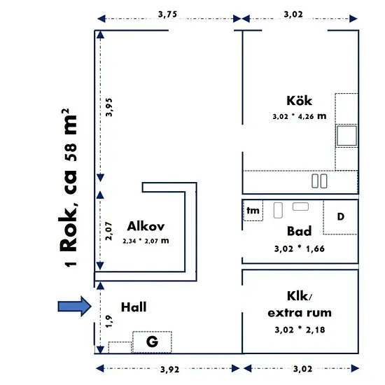 1 Rum - Lägenhet - 46 m²88131, Sollefteå